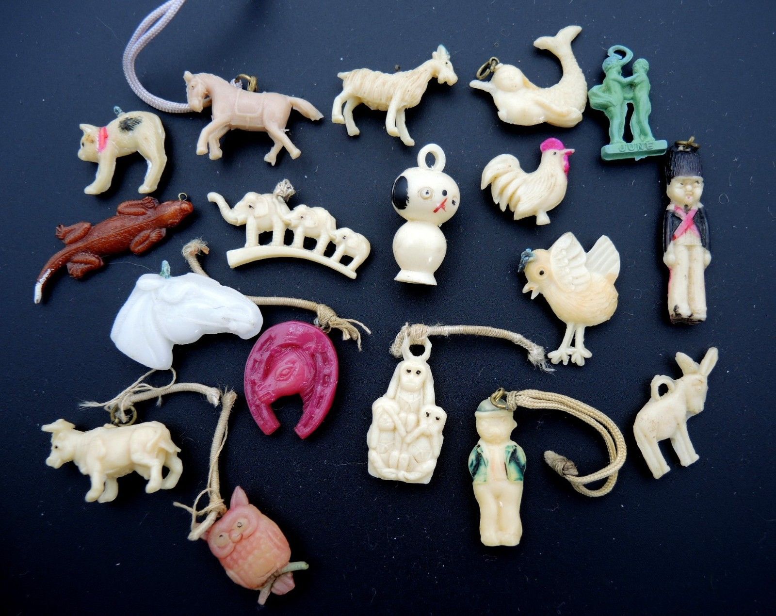 Title (ebay affiliate link): Vintage Lot of 18 Celluloid Charms Cracker Jack Toys Charms Early Plastic Charms