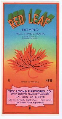 Red Leaf Brick Firecracker Label 1 1/2 40/90 ICC Class C Yick Loong Fireworks