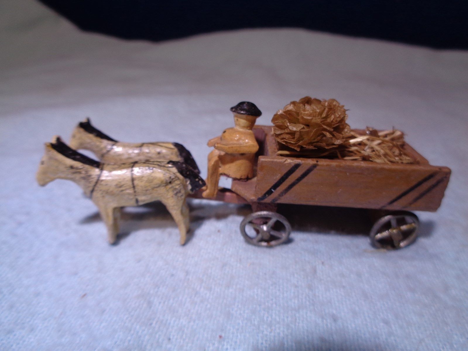 ~*~ESTATE FIND~*~ MINIATURE CARVED WOOD PENNY TOY *HORSE & WAGON*