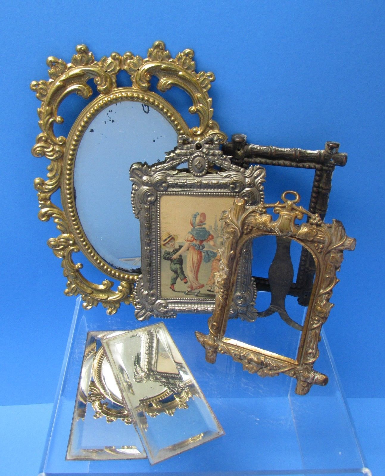 ASSORTMENT OF ANTIQUE LIGHTWEIGHT METAL FRAMES AND MIRRORS
