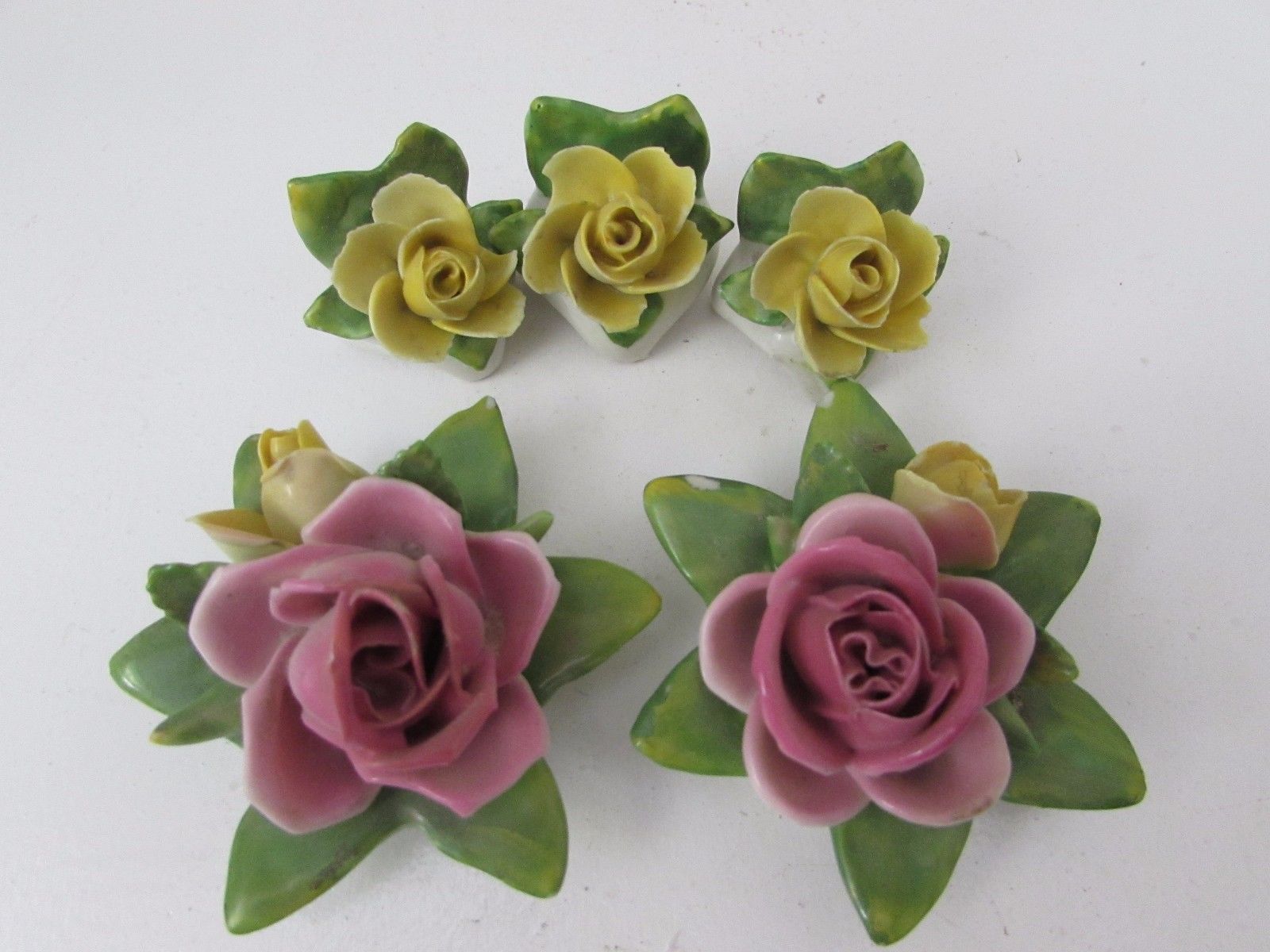 Title (ebay affiliate link): 5 Vintage Capodimonte Flowers Roses Yellow Pink Blue Crown Over N Mark