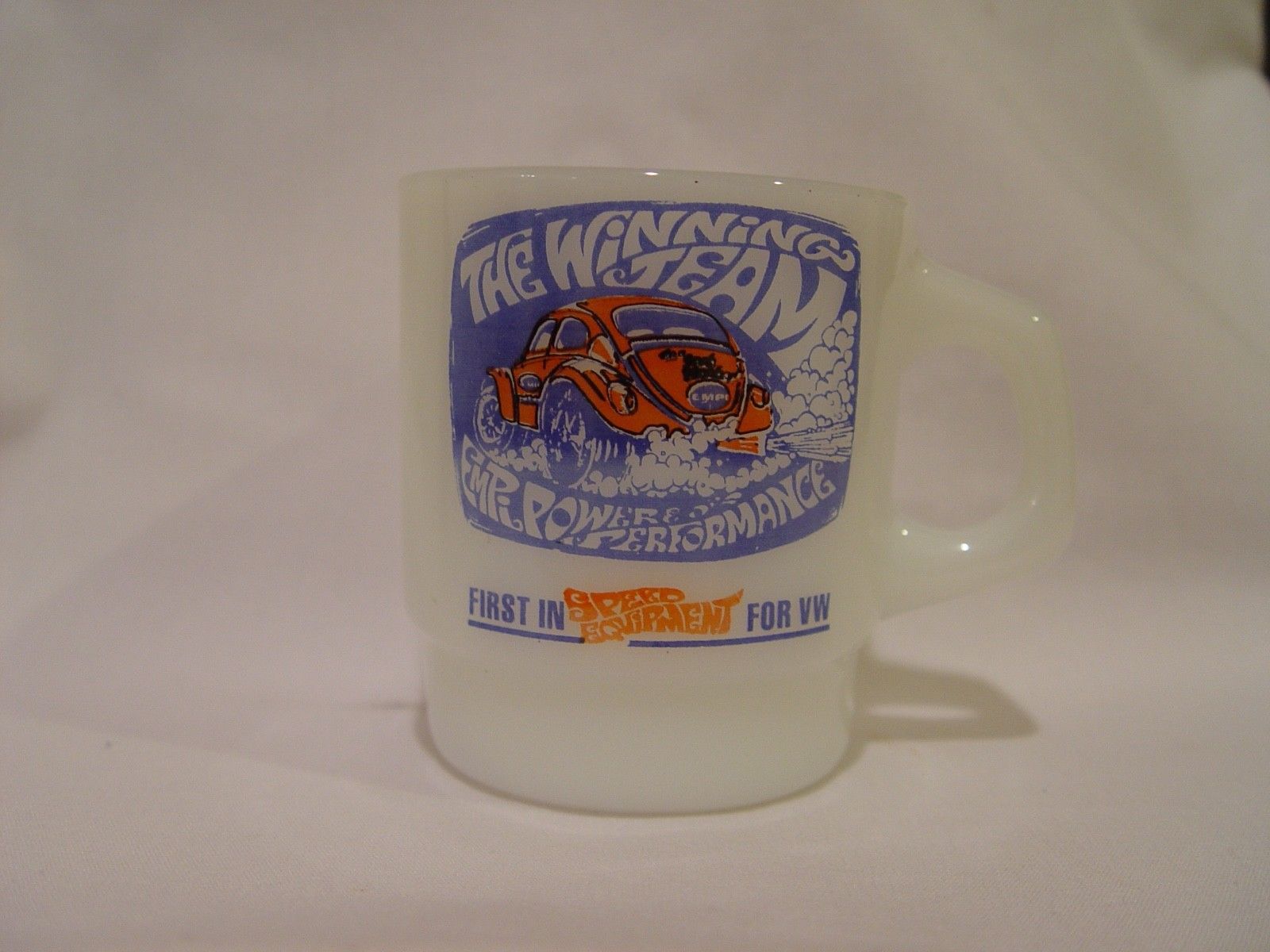 Fire-King EMPI The Winning Team Volkswagen VW Bug Advertising Coffee Mug