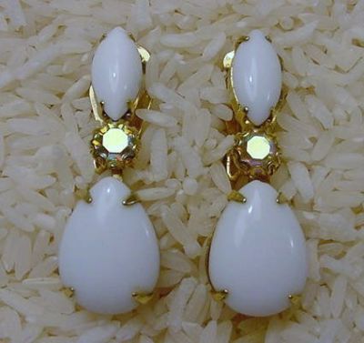 Vintage~MILK GLASS~Drop Dangle Clip Earrings