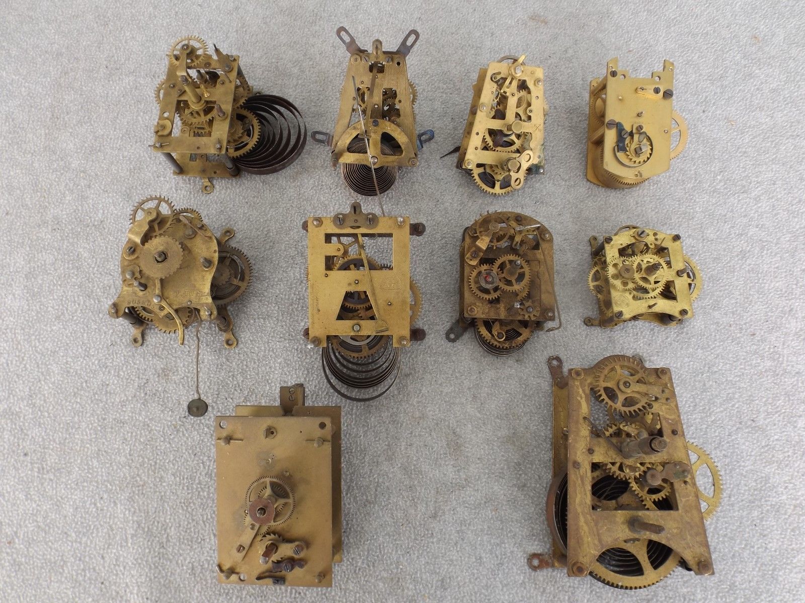 Title (ebay affiliate link): 10 ANTIQUE & VINTGE SMALLER SIZED MANTLE SHELF CLOCK MOVEMENTS CLOCK PARTS