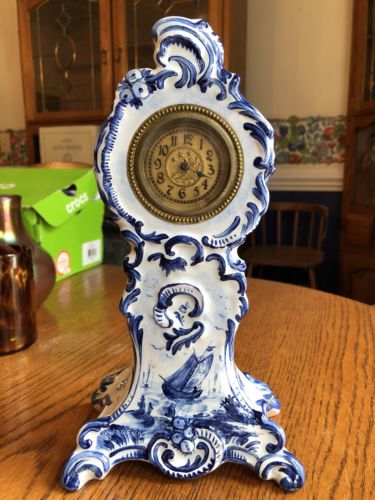 Title (ebay affiliate link): Antique Artist Signed Delft Holland Pottery Mantel Clock Gilt Cherub Dial Works