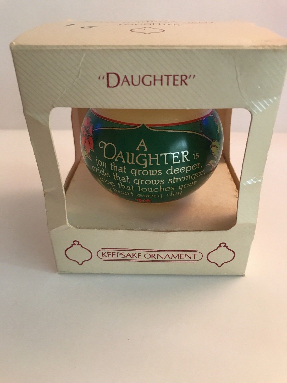 Title (ebay affiliate link): Vintage Keepsake 1984 Hallmark Daughter Poinsettias Ornament Glass In Box Used