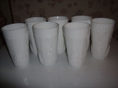 7 INDIANA COLONY HARVEST MILK GLASS COOLERS TUMBLERS
