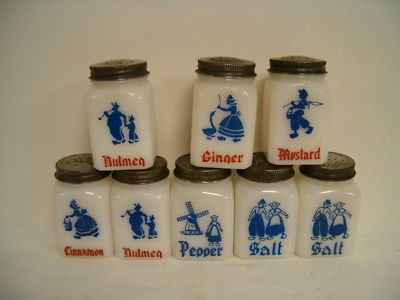 Title (ebay affiliate link): Milk Glass Spice Salt & Pepper Jars w/ Lids Dutch Decor