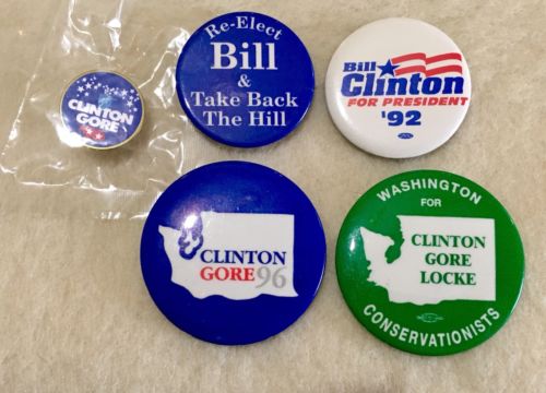 Title (ebay affiliate link): Lot Of 5 Bill Clinton Al Gore Political Pins Buttons 1992 1996 Washington State