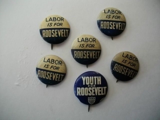 Title (ebay affiliate link): VINTAGE Franklin D. Roosevelt LABOR/YOUTH FOR ROOSEVELT Buttons/Pins 1940''s