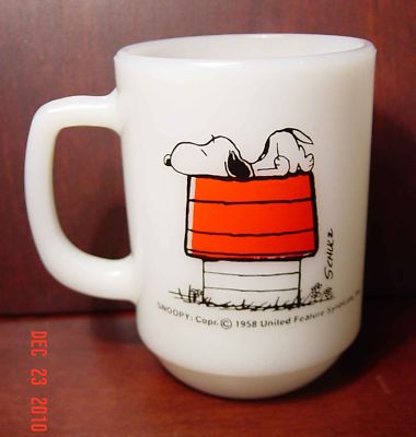 AH FIRE KING SNOOPY I'M ALLERGIC MORNING MILK GLASS MUG