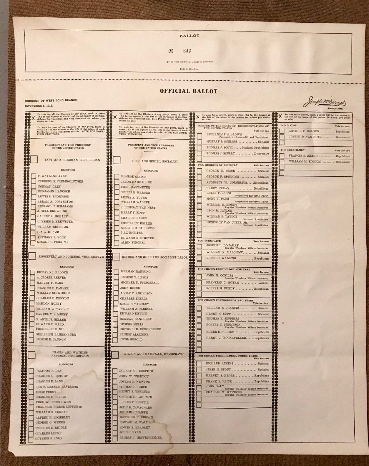 Title (ebay affiliate link): Antique Authentic1912 Official Election Voting Ballot Roosevelt Wilson Taft