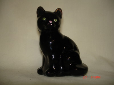 Fenton Sitting Cat - Copper Roses Black Milk Glass