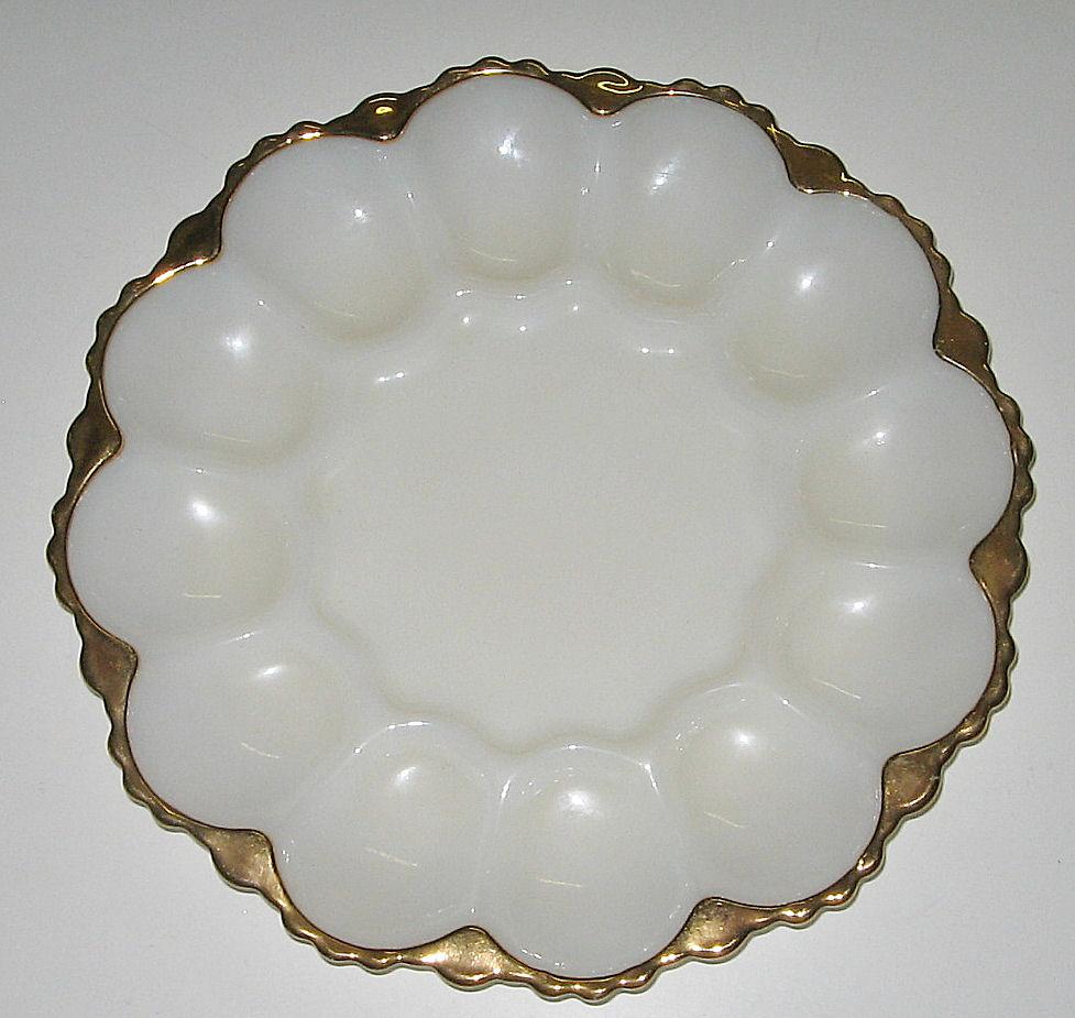 VINTAGE MILK GLASS FIREKING ANCHOR HOCKING EGG DISH