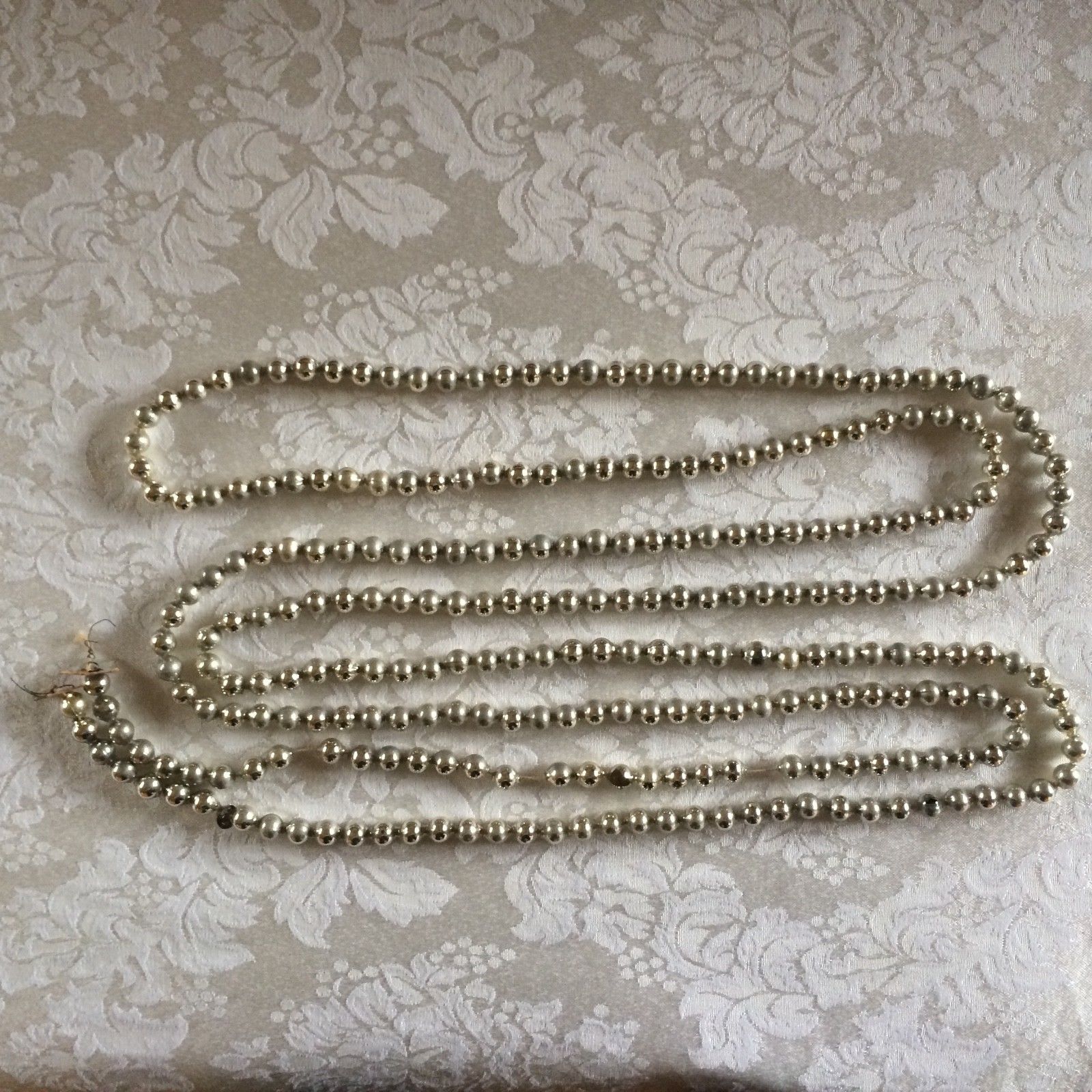 VTG 9'' Strand MERCURY GLASS SILVER FEATHER TREE GARLAND 3/8" BEADS