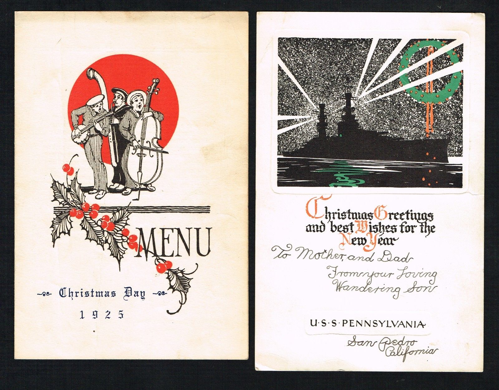 Title (ebay affiliate link): 1925 U.S.S. Pennsylvania Navel Destroyer Christmas Menu Program & Christmas Card