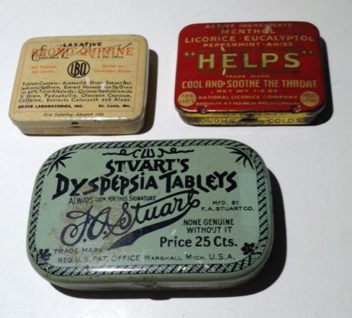 Title (ebay affiliate link): Lot Of 3 Vintage Medicine Tins - Stuarts, Helps, E.W. Grove