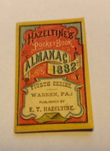 Title (ebay affiliate link): HAZELTINES POCKET ALMANAC 1882 trade card M. L. Webster, Albany NY (#143H)