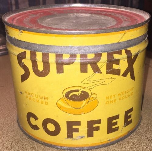Title (ebay affiliate link): Antique Coffee Tin Vintage Can 1 Lb Suprex General Foods Lithograph