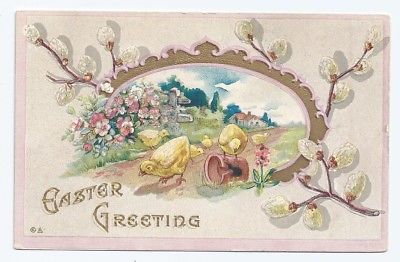 Vintage Easter Greetings Postcard with Cute Chicks Unposted