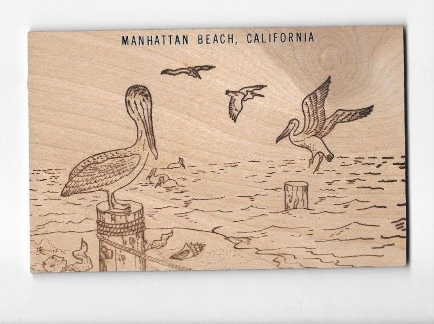 Title (ebay affiliate link): Vintage Wooden Postcard Manhattan Beach California CA $.22 Postage Unmailed