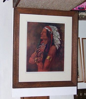 Title (ebay affiliate link): ANTIQUE TIGER OAK FRAME 21+X24+ w/ VINTAGE COLORED PRINT INDIAN CHIEF old glass