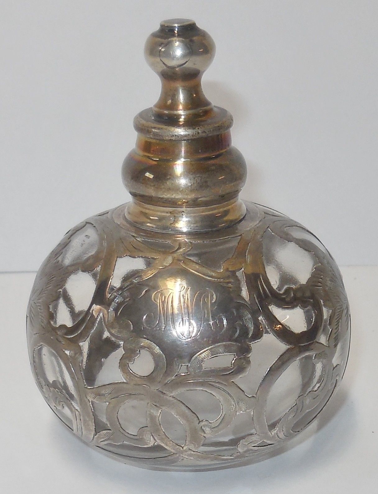 Title (ebay affiliate link): Vintage Silver Overlay Art Nouveau Glass Perfume Scent Bottle Antique