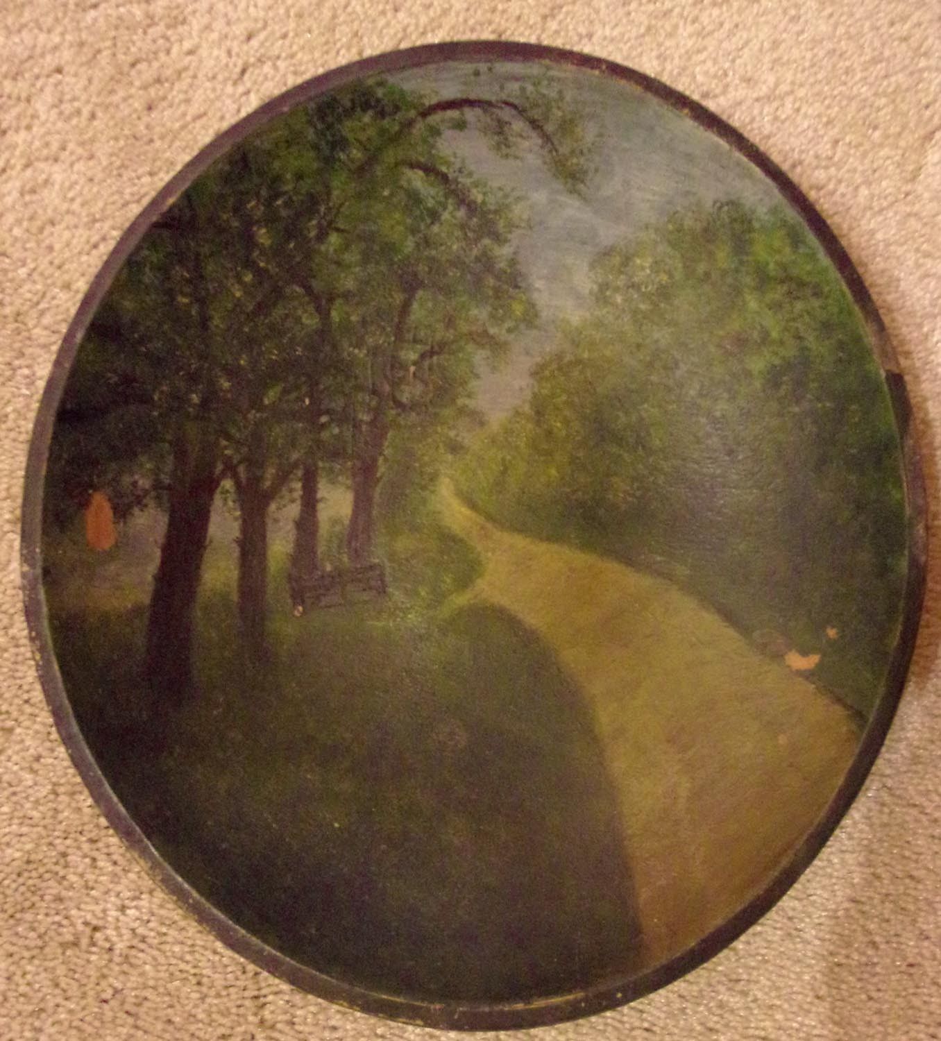 Antique Wooden Hand Painted Bowl - Trees and Lane