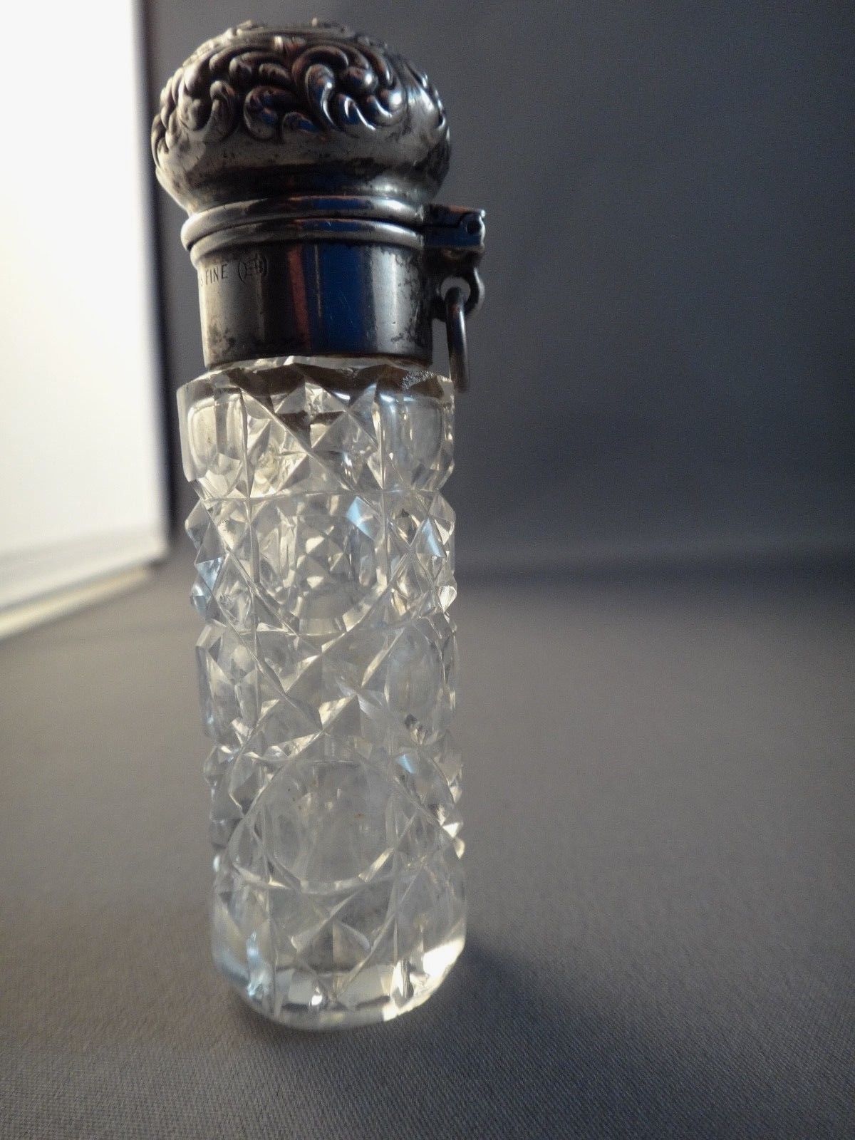 UNGER BROTHERS STERLING & CRYSTAL PERFUME BOTTLE FOR CHATELAINE