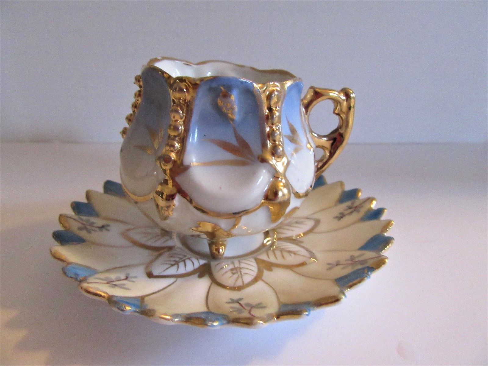 Miniature Porcelain Footed Tea Cup and Saucer With Gold Trim