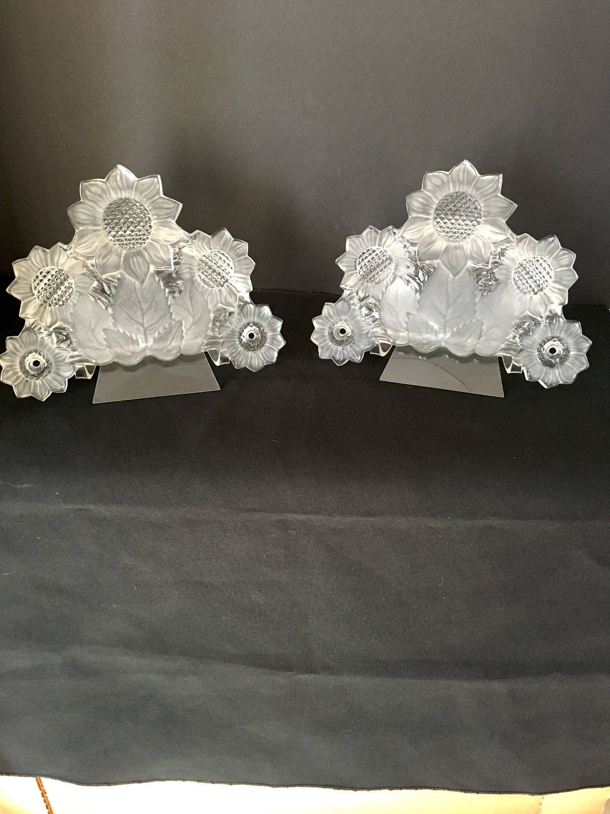 Title (ebay affiliate link): VINTAGE CURTAIN TIEBACKS- MIRROR OR PICTURE CORNERS- CLEAR GLASS SUNFLOWERS
