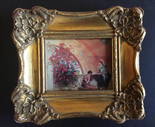 Title (ebay affiliate link): Small Ornate Vintage Gold Gilt Wood and Gesso Frame with Classical Motif Print