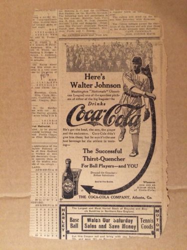 Title (ebay affiliate link): Coca-Cola Baseball Newspaper Ad Walter Johnson 1914 Sign Paper