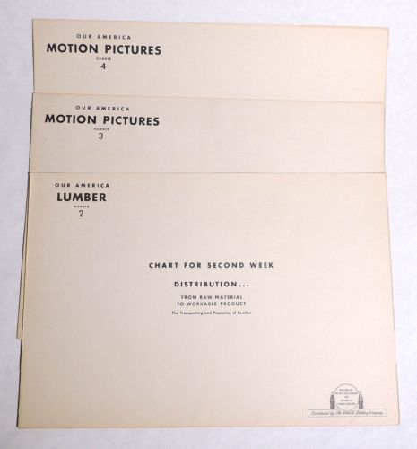 P475. Lot of 3: OUR AMERICA LUMBER & MOTION PICTURE Chart Poster Coca Cola 1944[