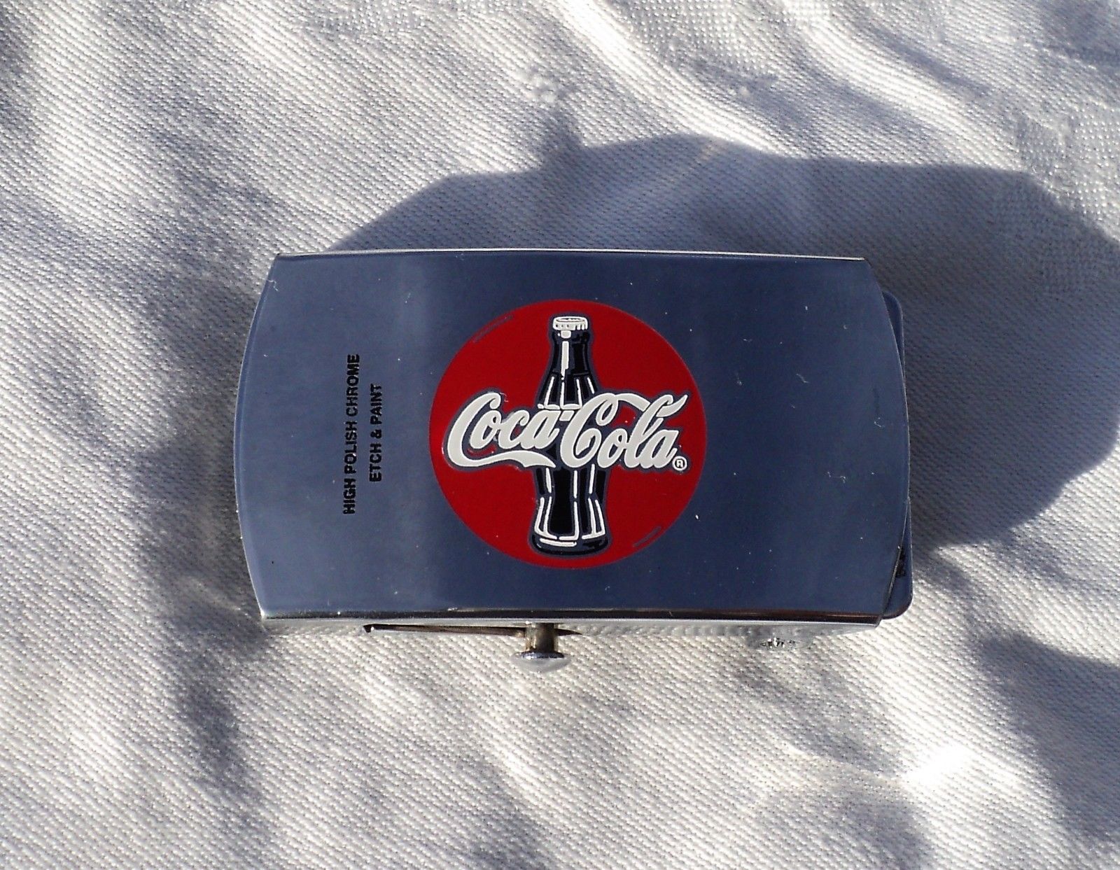 Title (ebay affiliate link): Vintage Coca Cola Coke Advertising Chrome Brass Zippo Belt Buckle Discontinued