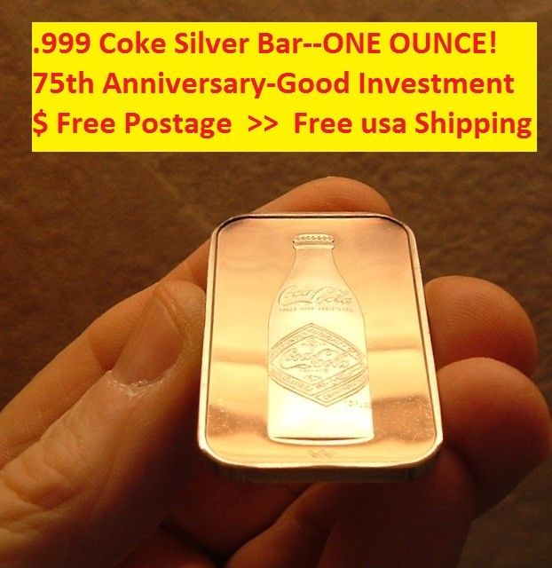 Title (ebay affiliate link): Coca Cola Silver Art Bar Coke 75th Anniversary Art Silver .999 Silver Bar