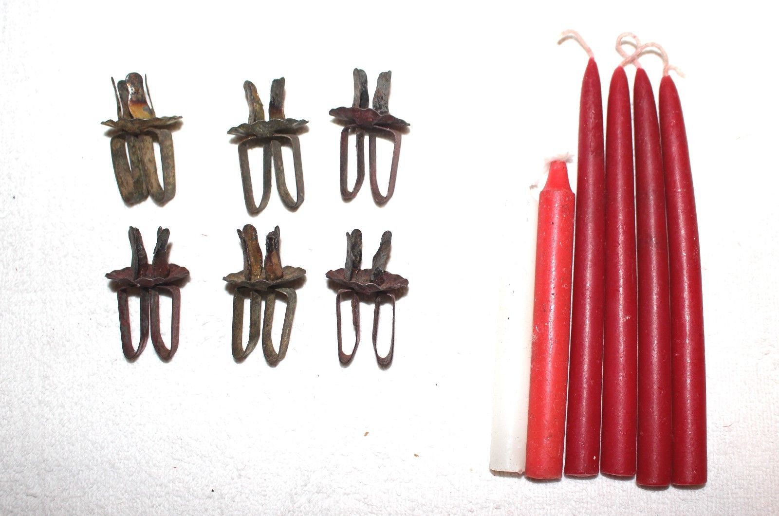 Title (ebay affiliate link): Six Pinch-on early Tin Candle Holders. Pinched on bough. Germany. 1891
