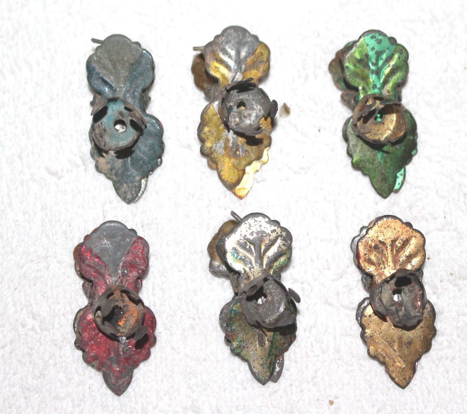 Title (ebay affiliate link): Six early Leaf Shaped, bright Clip-on Tin Candle Holders. Germany. Late 1890s
