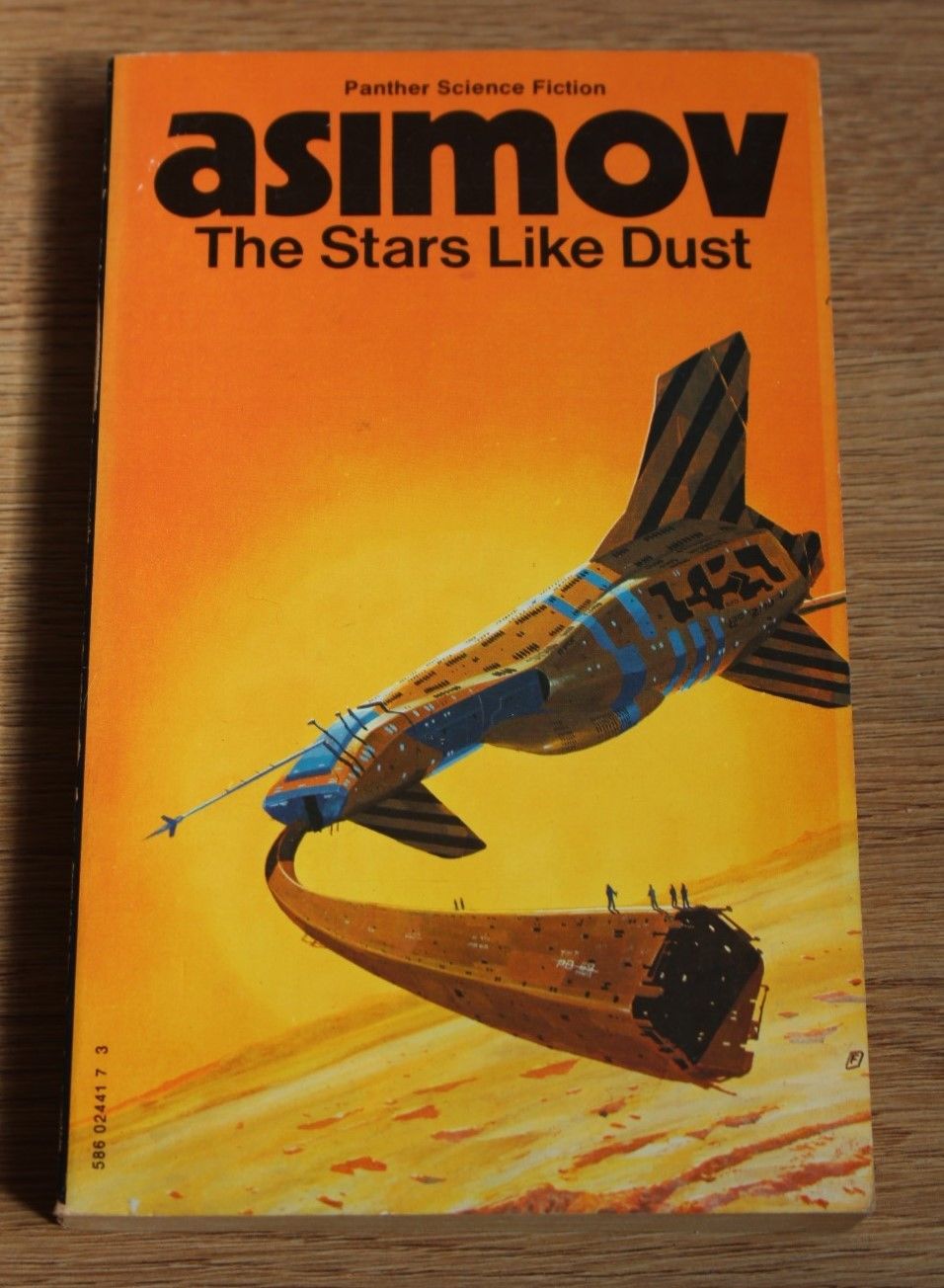 Title (ebay affiliate link): Isaac Asimov science fiction novel - The Stars Like Dust - Chris Foss cover art