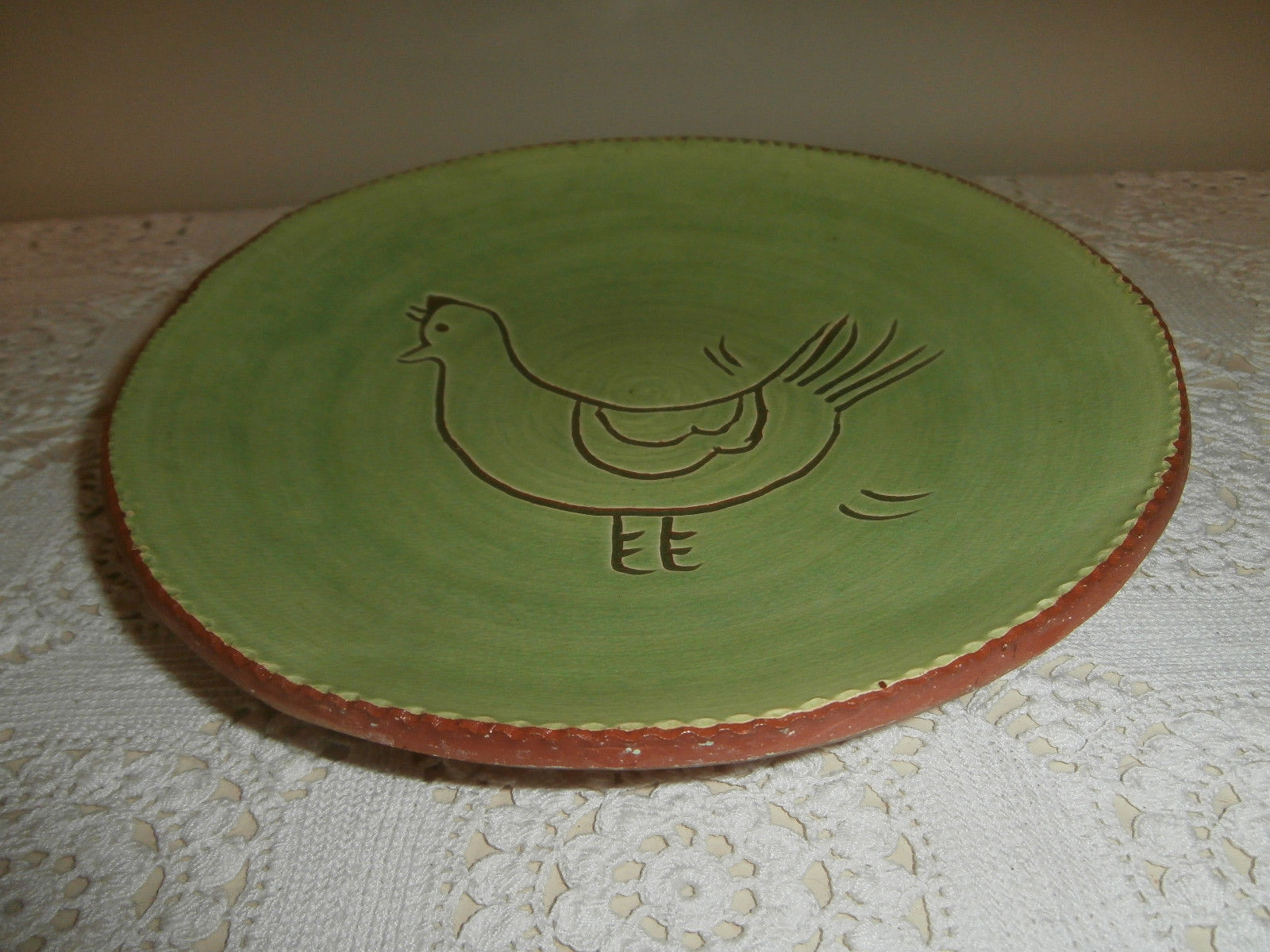 Title (ebay affiliate link): VINTAGE REDWARE FOLK ART BIRD PLATE~SIGNED~DOROTHY LONG 1984~PRIMITIVE~COLONIAL