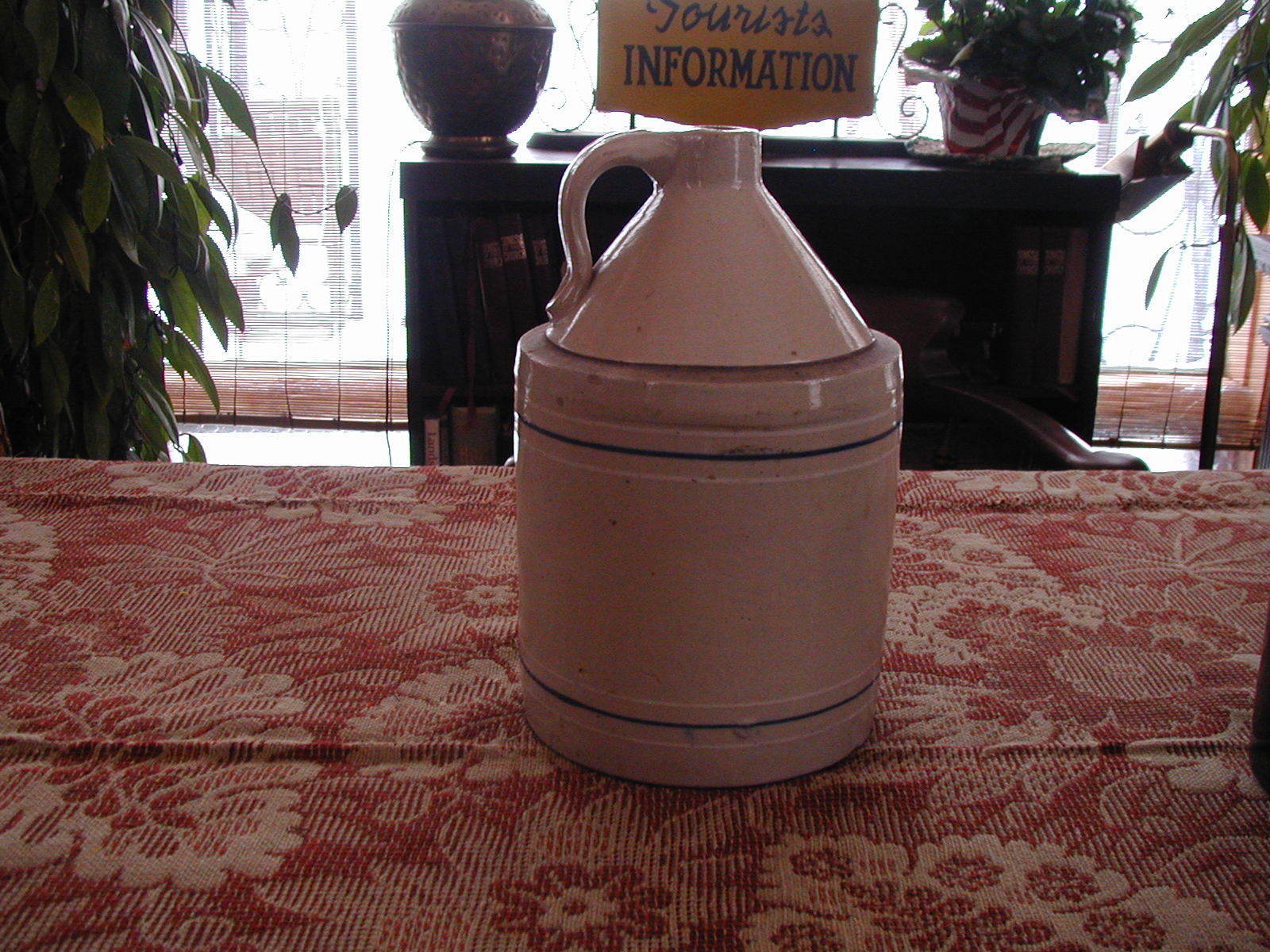 Title (ebay affiliate link): Old/Vintage Stoneware Crock Jug with Blue Stripes