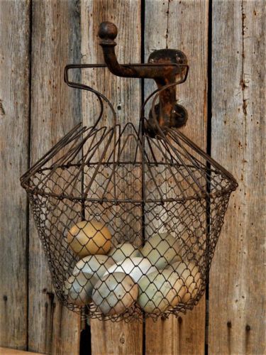 Title (ebay affiliate link): Antique Farmhouse Country Primitive Wire Collapsible Hanging Egg Basket