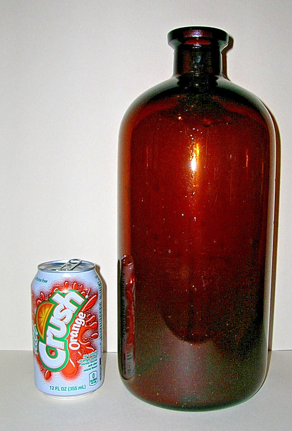 ANTIQUE VINTAGE AMBER BROWN LARGE GLASS APOTHECARY MEDICINE PHARMACY BOTTLE 13"
