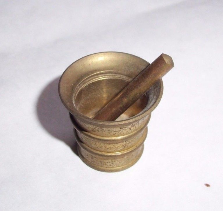 Title (ebay affiliate link): Vintage Miniature Brass Mortar & Pestle Set Apothecary ? Pharmacy ? Dollhouse ?