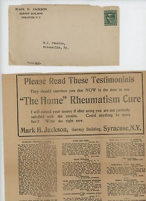 Title (ebay affiliate link): Mr Fancy Cancel Mark H Jackson Rheumatism Cure Contents 1917 Cvr #4777