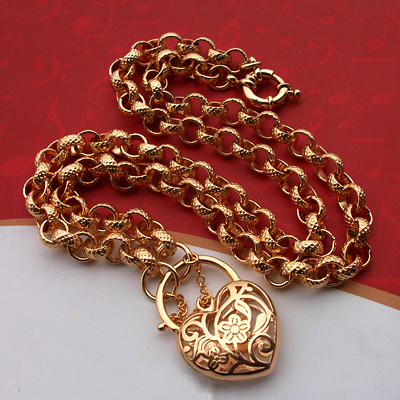 Title (ebay affiliate link): 9k Solid Gold GF Belcher Necklace & Heart Padlock 600mm