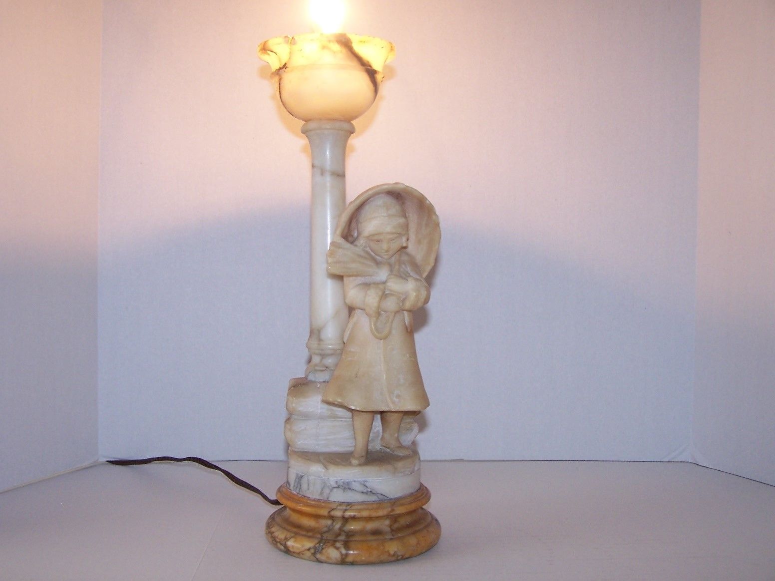 Title (ebay affiliate link): Carved Alabaster/Onyx/Marble(?) Figural Lamp with Foot Switch Made in Italy
