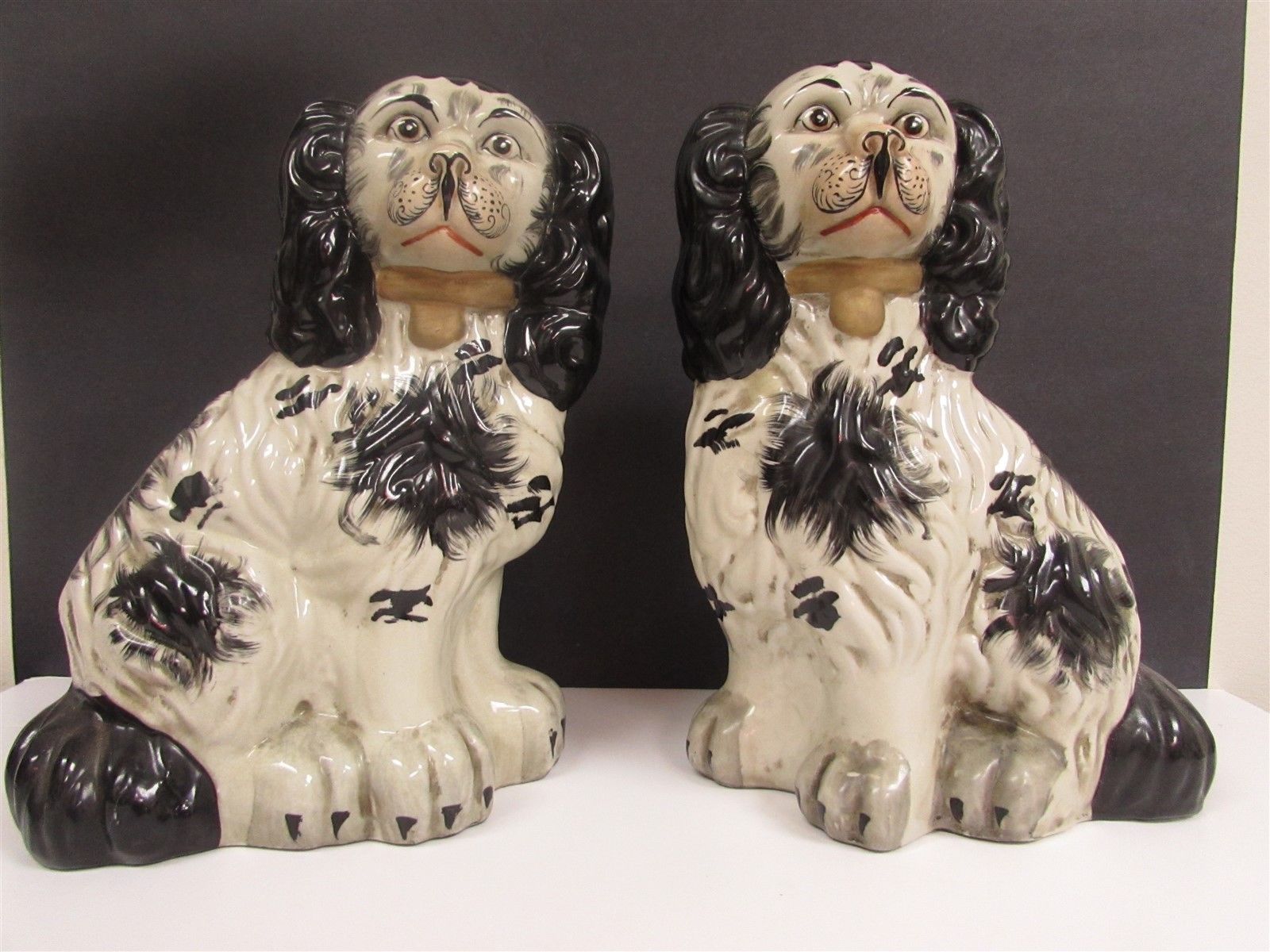 Pair of Vintage Staffordshire Porcelain Painted Dog Figurines Maltese Spaniel