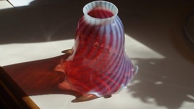 ANTIQUE CRANBERRY CRANBERRY SWIRL GLASS LAMP SHADE RUFFLED RIM FENTON?