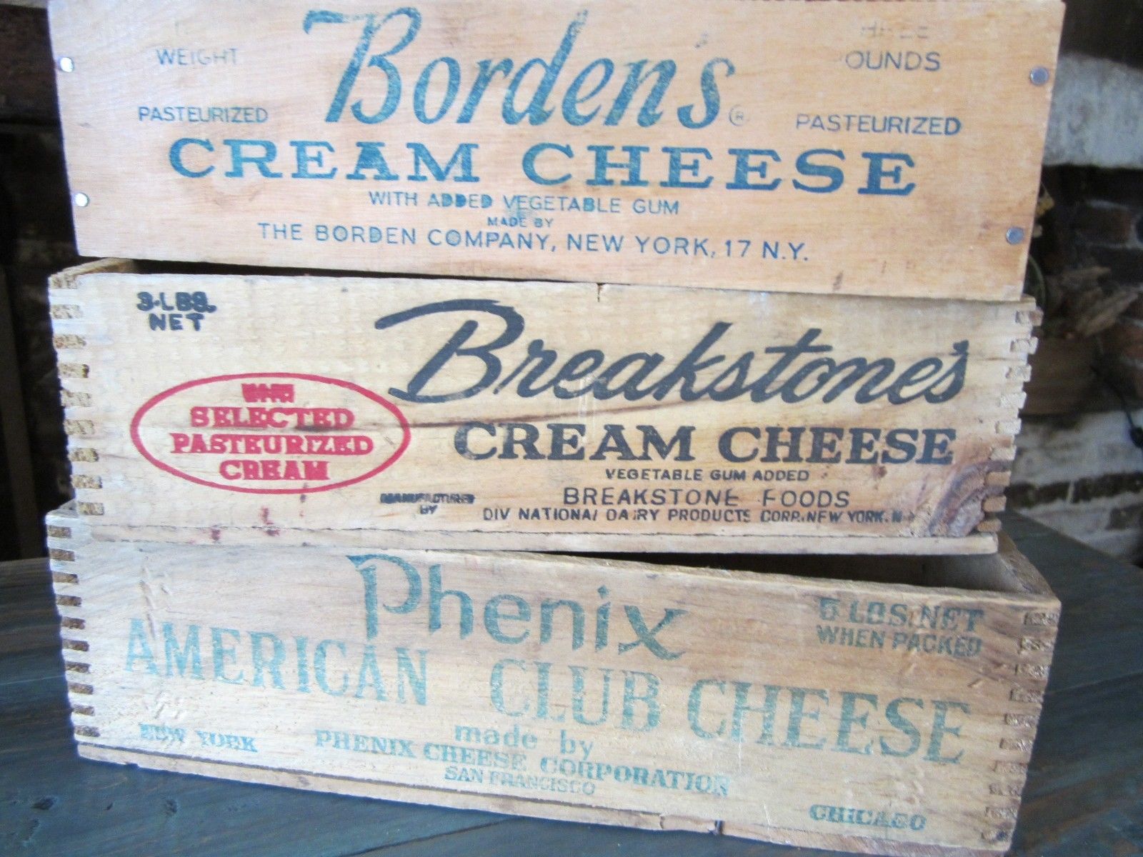Lot of 3 Vintage Wood Bordens Breakstone & Phenix Cheese Box Crate Wooden